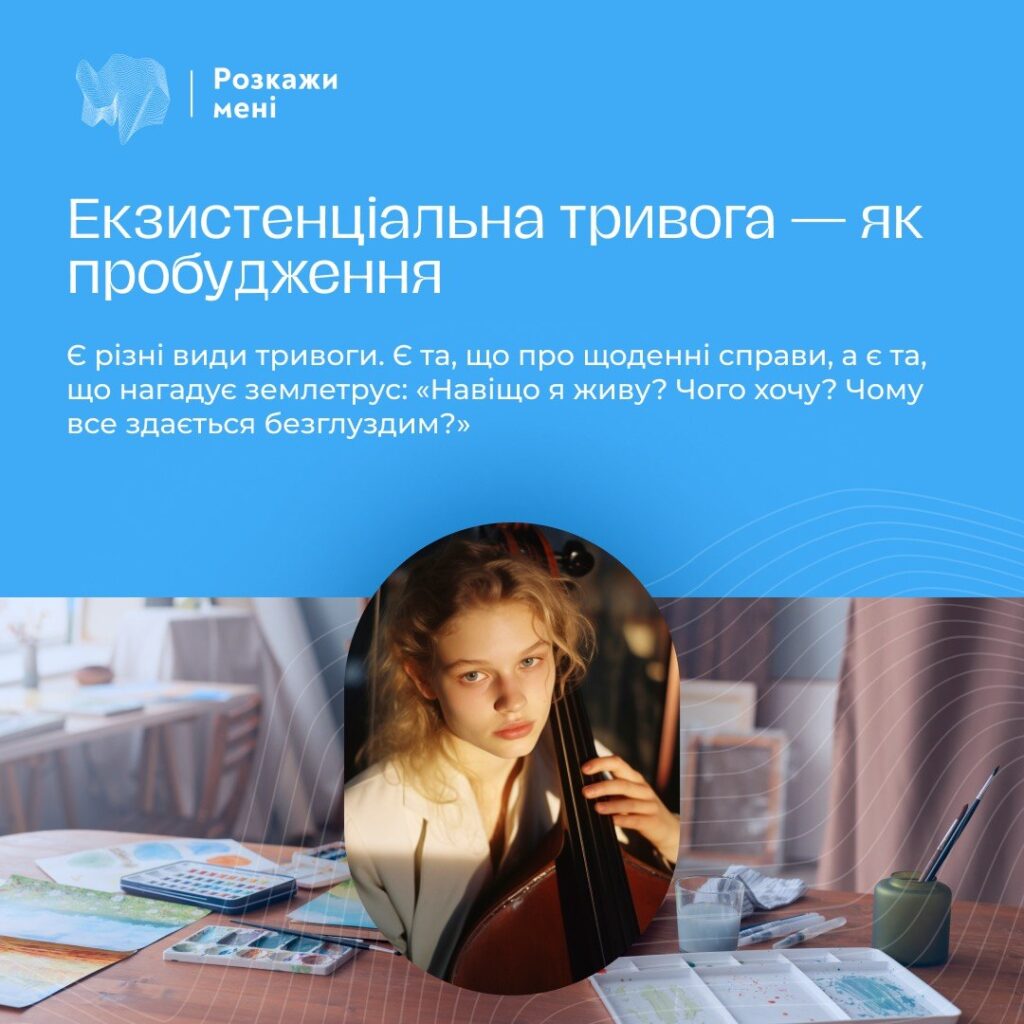 Екзистенціальна тривога — як пробудження Є різні види тривоги. Є та, що про щоденні справи, а є та, що нагадує землетрус: «Навіщо я живу? Чого хочу? Чому все здається безглуздим?» Така тривога з’являється, коли старі сенси руйнуються, а нових ще немає. Це не лише страждання, а й поштовх — до глибшого розуміння себе, до переоцінки життя. У терапії, наприклад, це стає моментом народження відповідальності: я не завжди обираю, що зі мною станеться, але можу обрати, як жити з цим далі. Спробуйте запитати себе: «Що цей неспокій каже мені про мої справжні бажання?» Можливо, саме тривога відкриває шлях до змін.